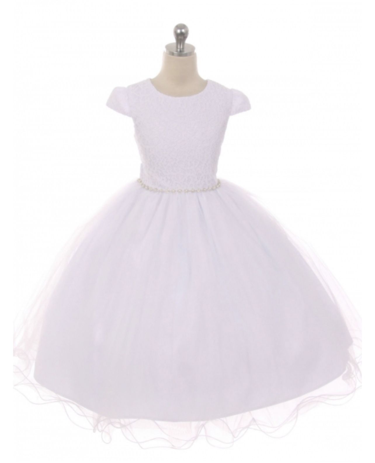 Girls Dress WHITE Cap Sleeve Lace Dress with Rhinestone Accents size 8