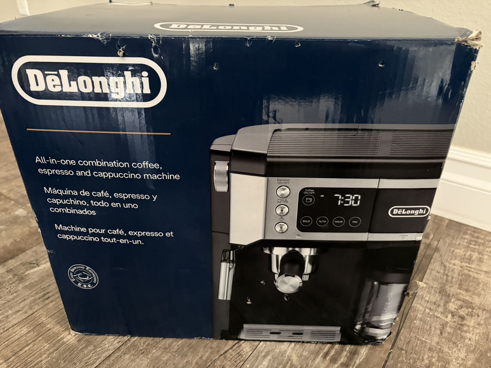 Espresso and coffee machine New in box Box has some damage on side from moving it