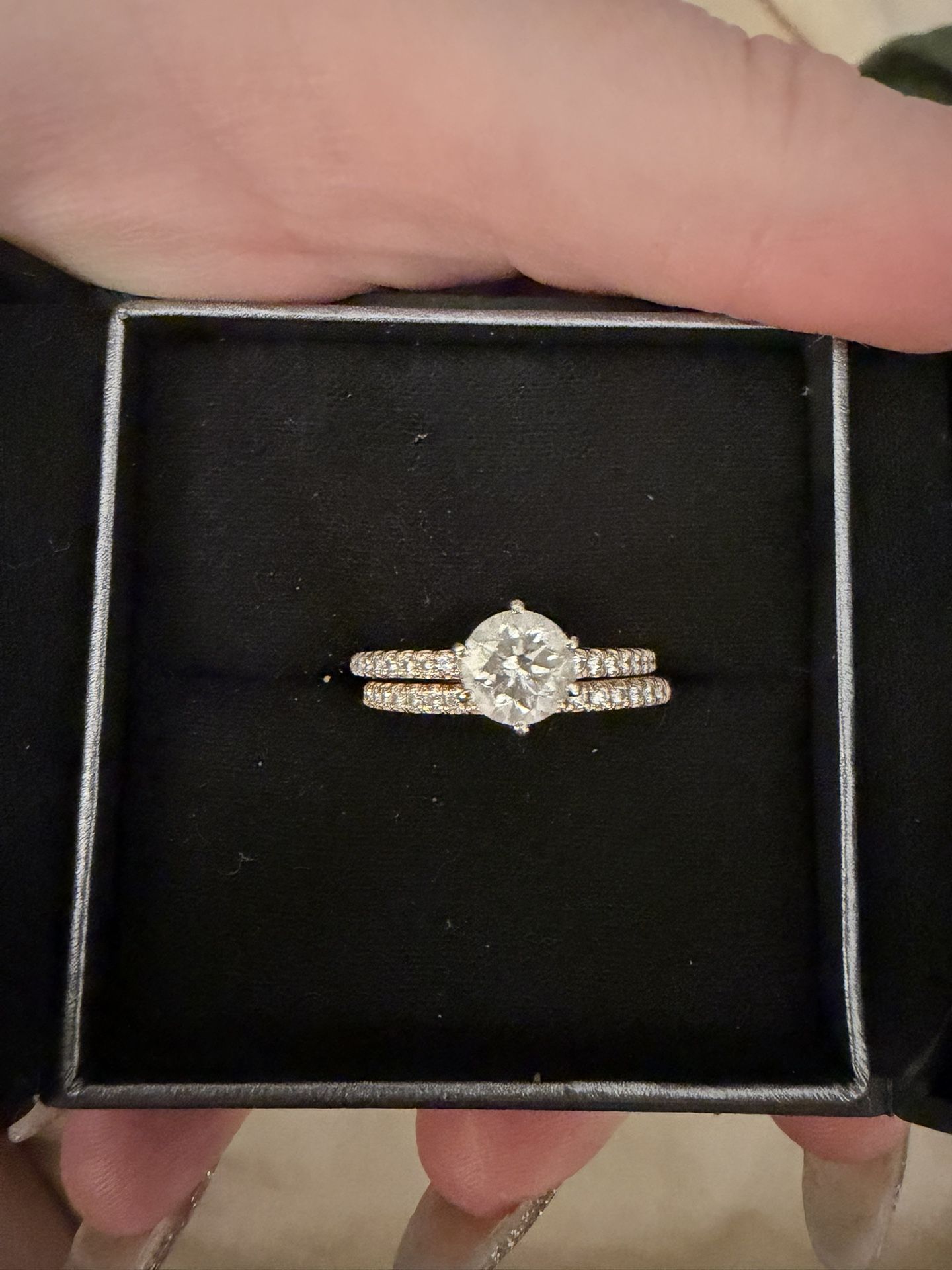 1CT Diamond Wedding Set – 14K Rose Gold – Robbins Brothers 💍 Beautiful engagement ring + matching band set ✨ Details: • 1.06 ct round center diamond (H color) • 14K gold setting • Matching diamond band included • Purchased from Robbins Brothers • Original price $5,900+ (receipt included) ✨ Condition: • Gently worn • Clean & very sparkly • Classic, timeless style 💲 Asking: $4,500 OBO (Serious offers welcome)