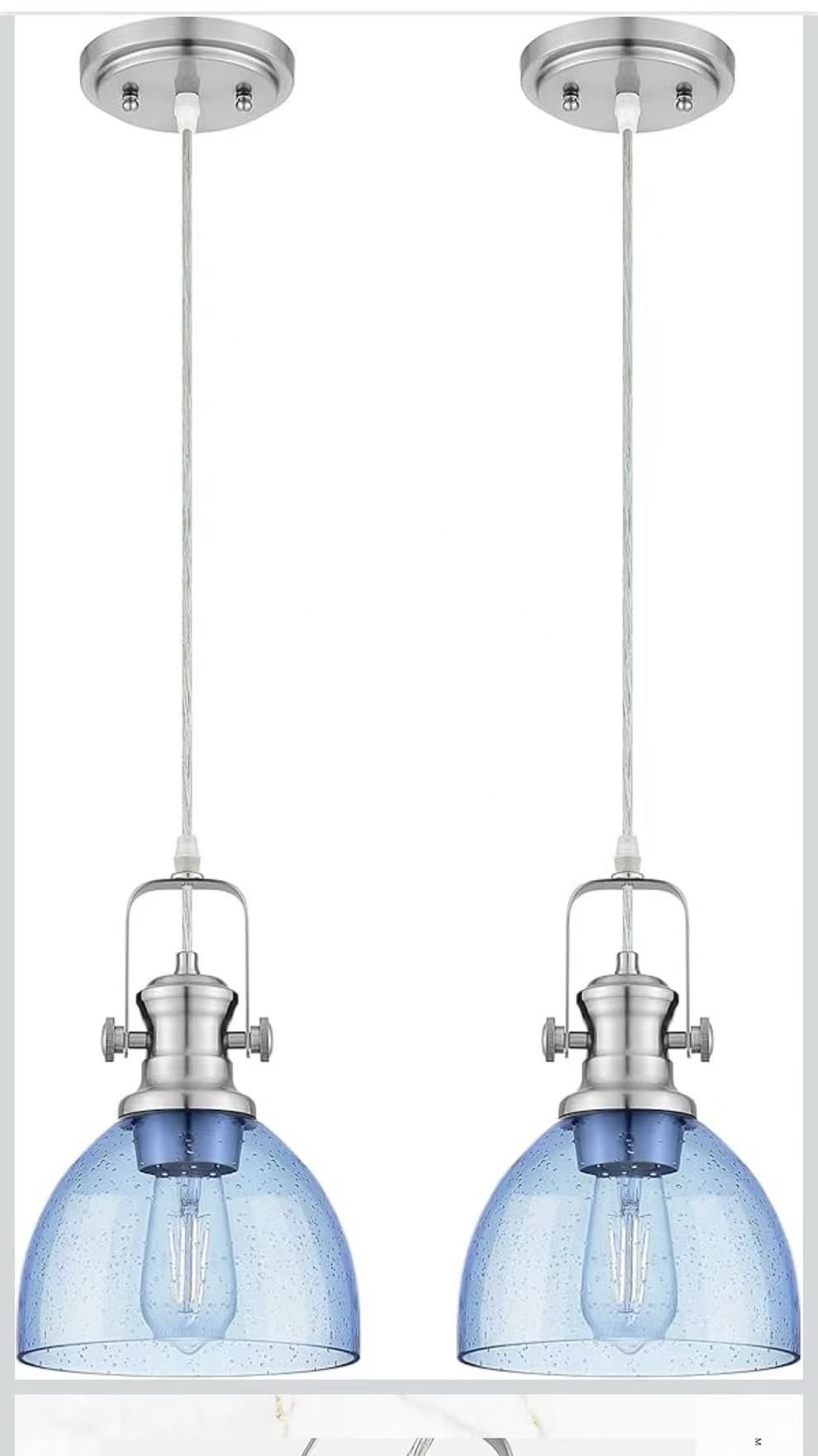 2 Pack Pendant Lights Kitchen Island, 7.5" Farmhouse Pendant Lighting with Blue Seeded Glass Shade, Vintage Hanging Light Fixtures for Dining Room, Brushed Nickel Finish, AD-22151-1P2-SN-BL$40