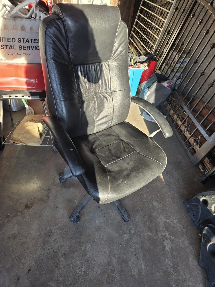 Solid office chair. Leather seat with solid metal base. All wheels intact