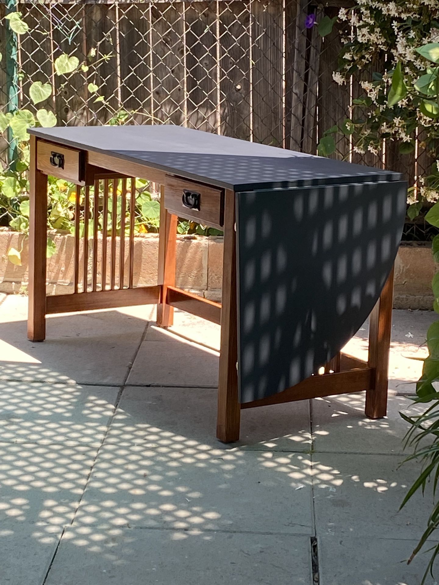 $70.00 or best offer 55” long x 23 3/4 wide With the extension leaf it’s 77 1/2” Im pretty sure the top is oak and not veneer