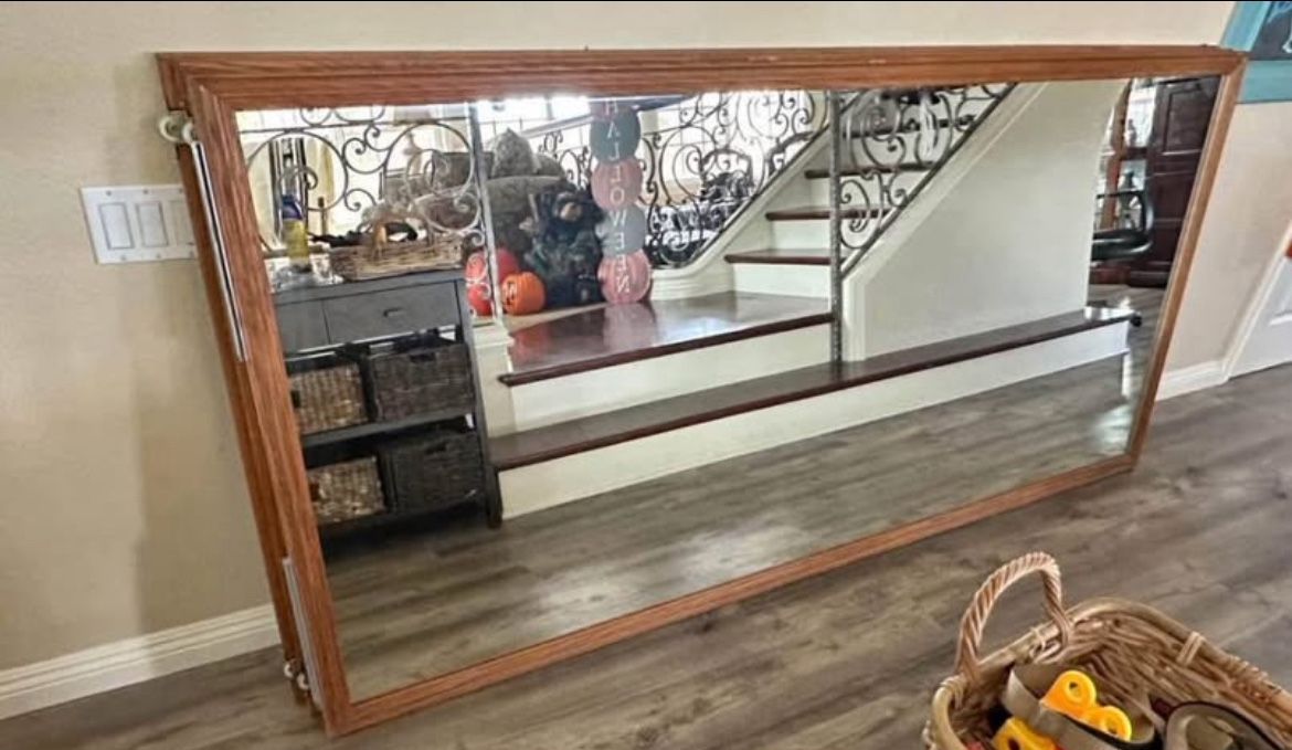 2 Wardrobe Mirror Doors w/ Oak Frames 94x45in.