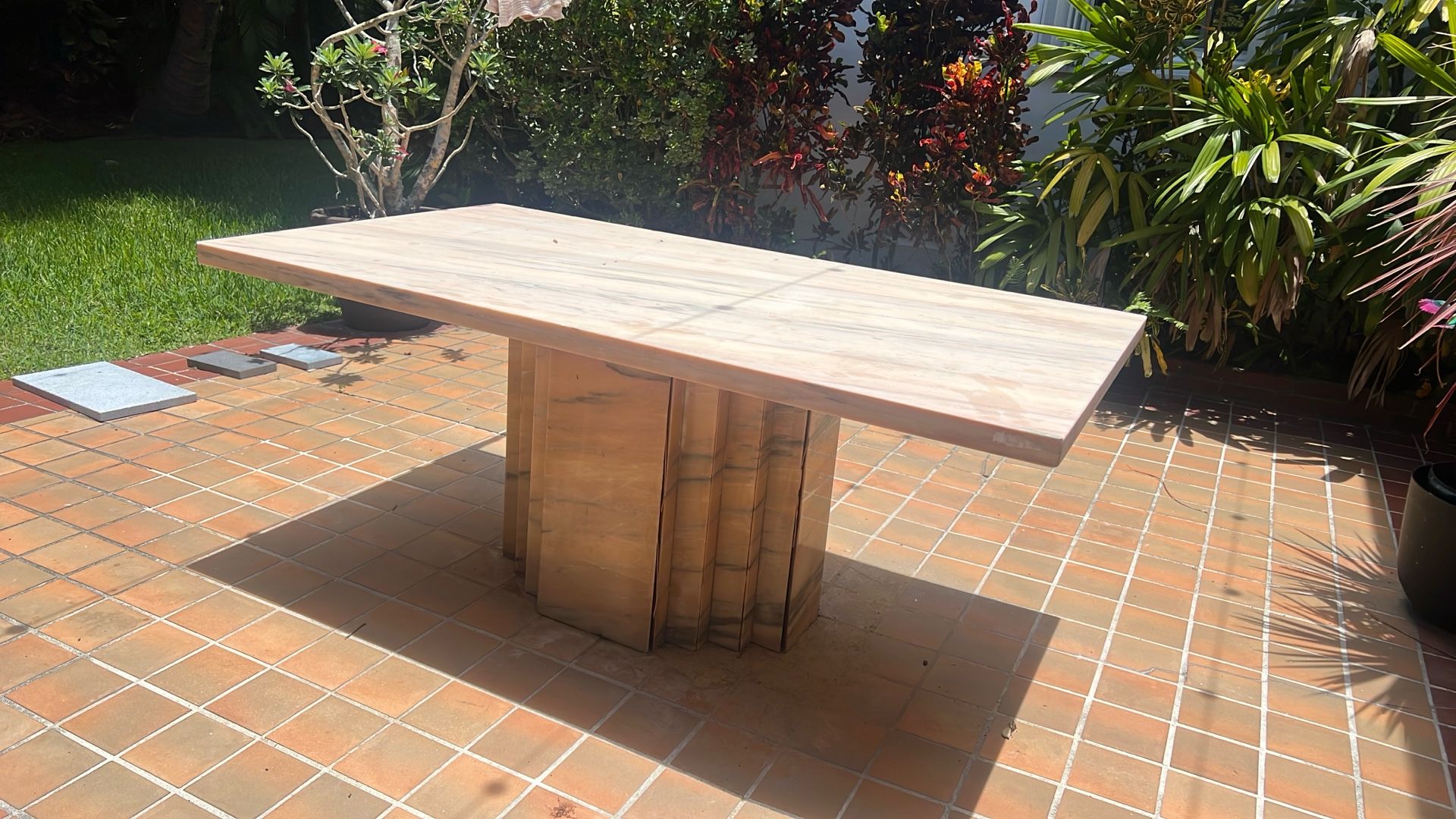 Needs Restoration This beautiful Art deco marble table for Outdoors. - Accommodates 8 people Length 7 foot / 84 inches Wide 4 foot/ 48 inches Height 35”