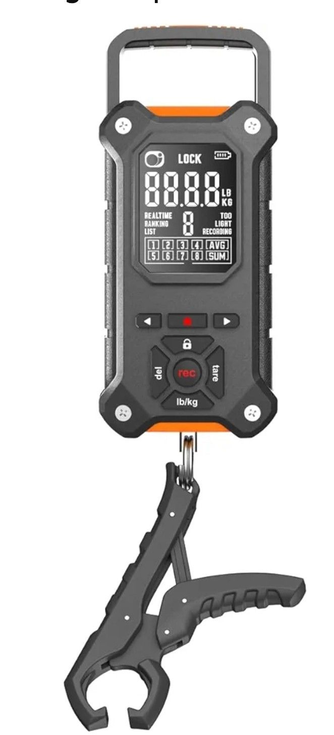 Fish Scale with Lip Gripper, 50 lbs Tournament Bass Scale with 8 Storage Bins, Digital Fishing Weight Scale with Hook & Clamp, High Contrast Hanging Weigher for Boat, Fishing Gifts for Men BRAND NEW