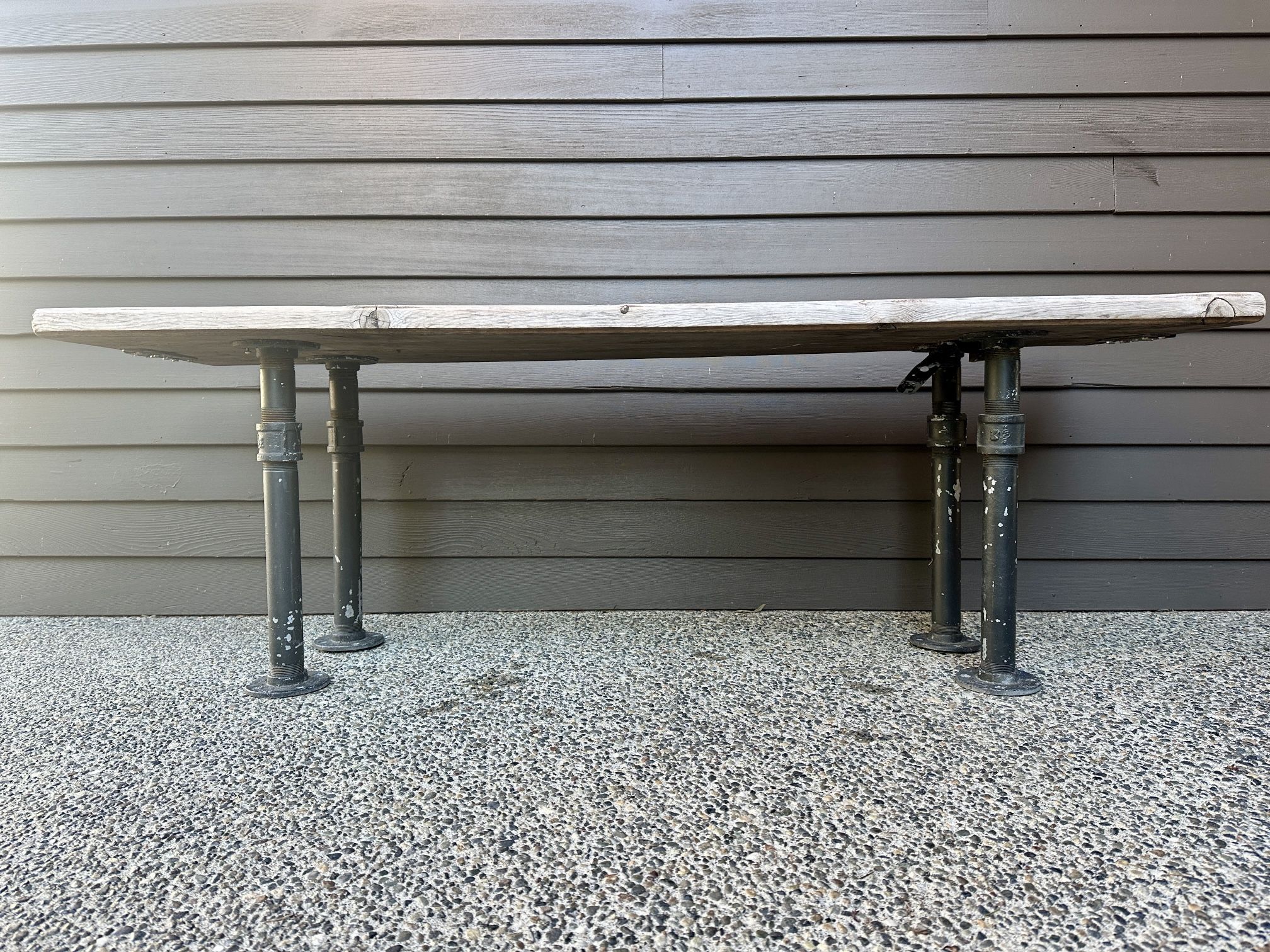 Handmade Industrial Wood Bench Solid wood top. Heavy steel pipe legs. Very sturdy. Rustic industrial look. Perfect for entryway, foot of bed, or console. One of a kind. Heavy and stable. Local pickup only. Pickup available today or tomorrow