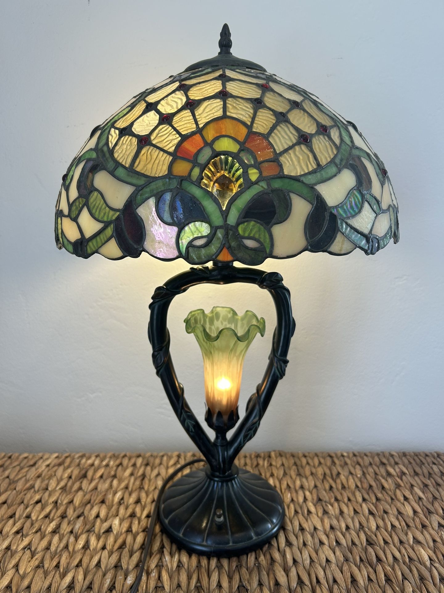 Vintage Stained Glass Lamp Tiffany Style Table Accent Lamp Retro Tulip Center