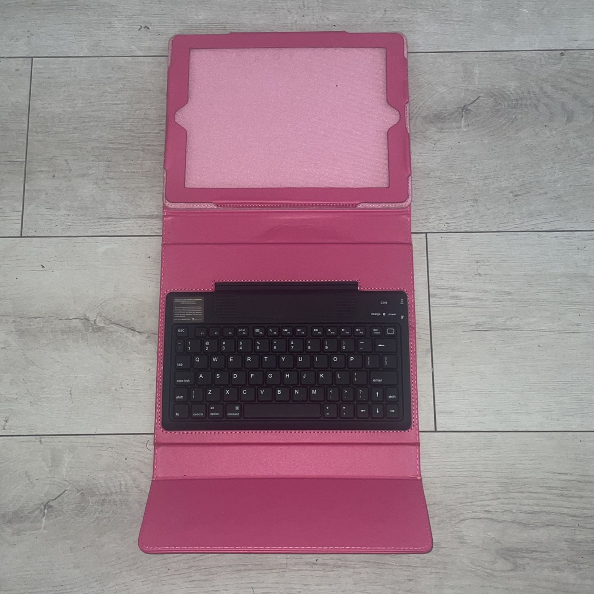 This is compatible with iPad 1, 2 & 3! Includes leather fold out case & built in Bluetooth Keyboard
