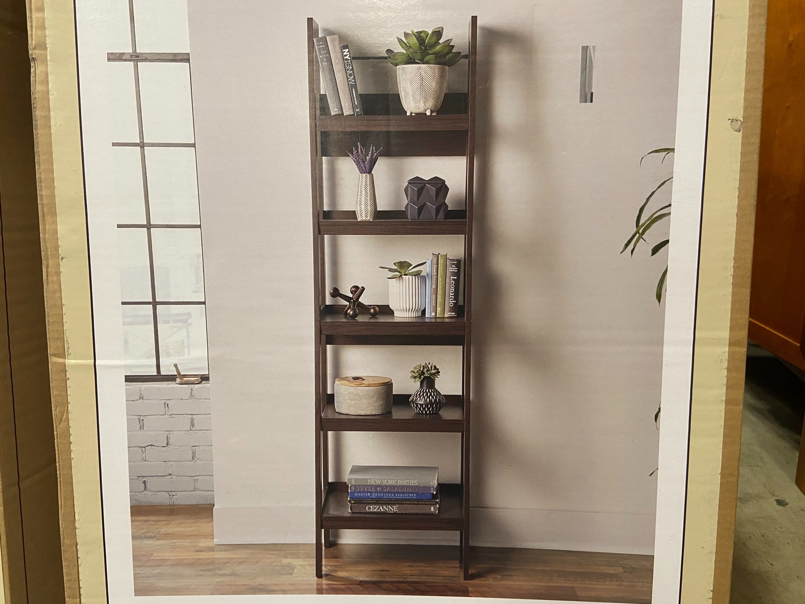 ALLEN + ROTH 72″ Camden Ladder Shelf with Dark Walnut Finish