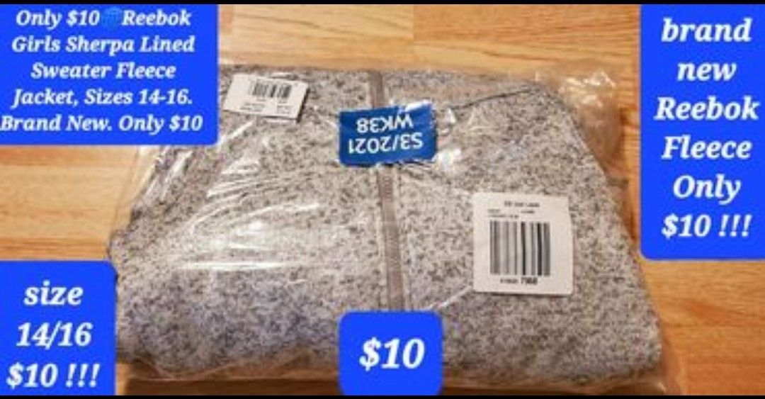 Only $10🌐Reebok Girls Sherpa Lined Sweater Fleece Jacket, Sizes 14-16. Brand New. Only $10