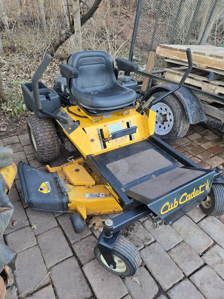 44" cub cadet zero turn mower. 1100 hours approximately. Cuts great. Last used over the summer. Will need a battery and likely tires. $1200