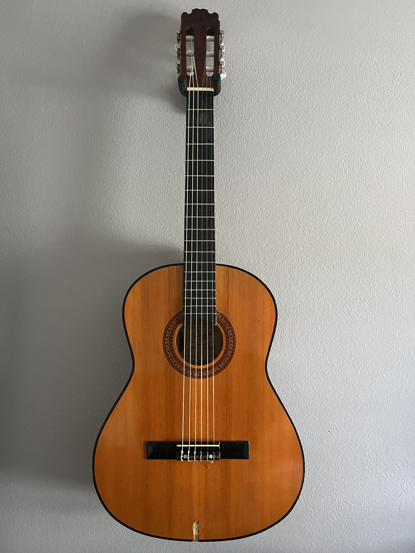 Regal model RGC-44 full size classical acoustic guitar. Assuming it was made in the 1980s based off of where it's made (Taiwan). Neck is in decent shape and it plays very well. Great sounding and playing classical. Chip in the base of the body as seen, no major damage beyond that. Local pickup in Ocoee, FL.