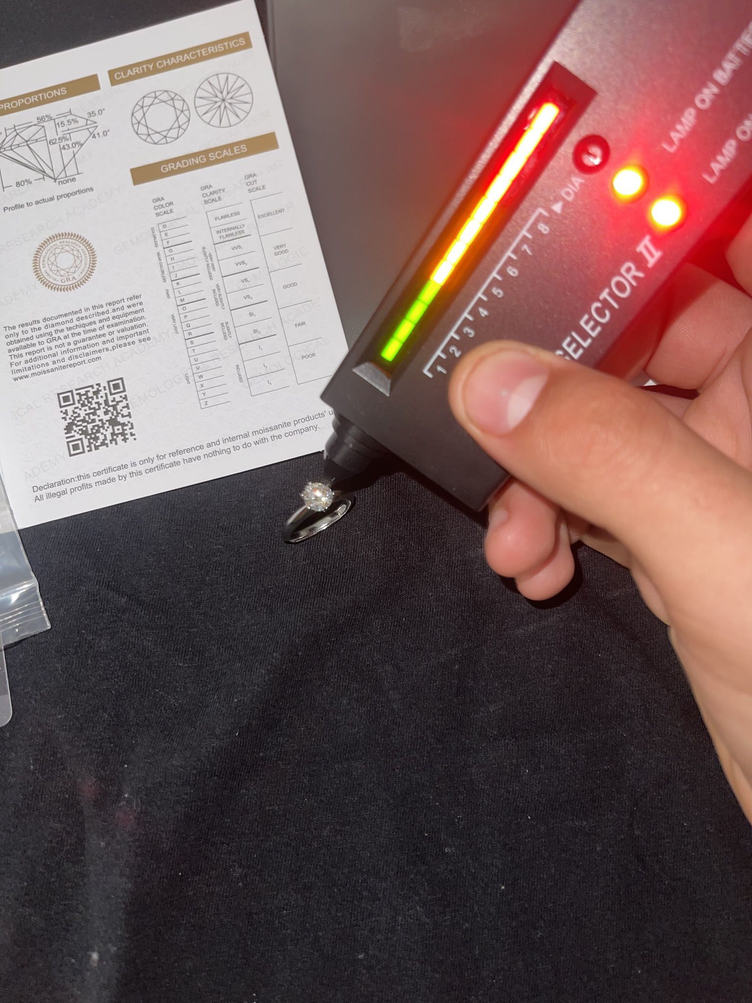 Moissanite ring Size is adjustable Passes diamond tester comes with a certificate Saying details about the moissanite 1 carat engagement ring