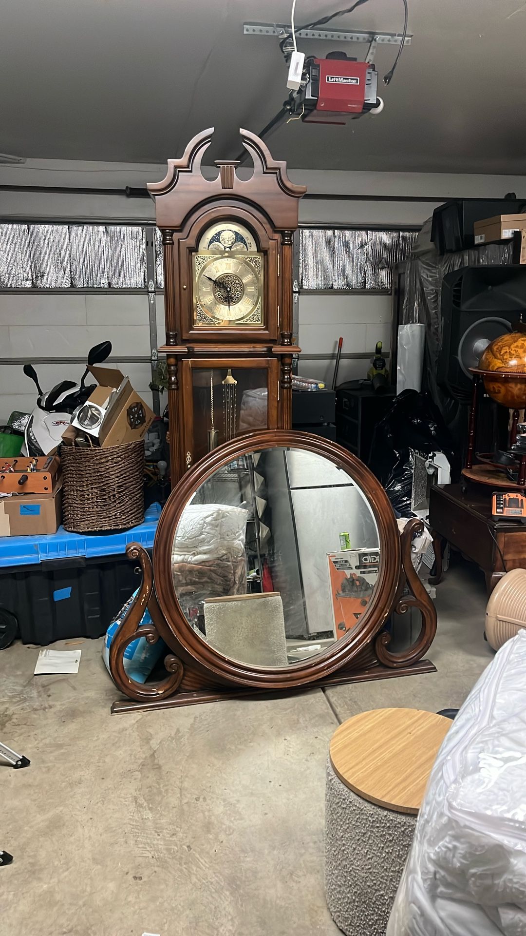 Grandfather Clock And Round Mirror