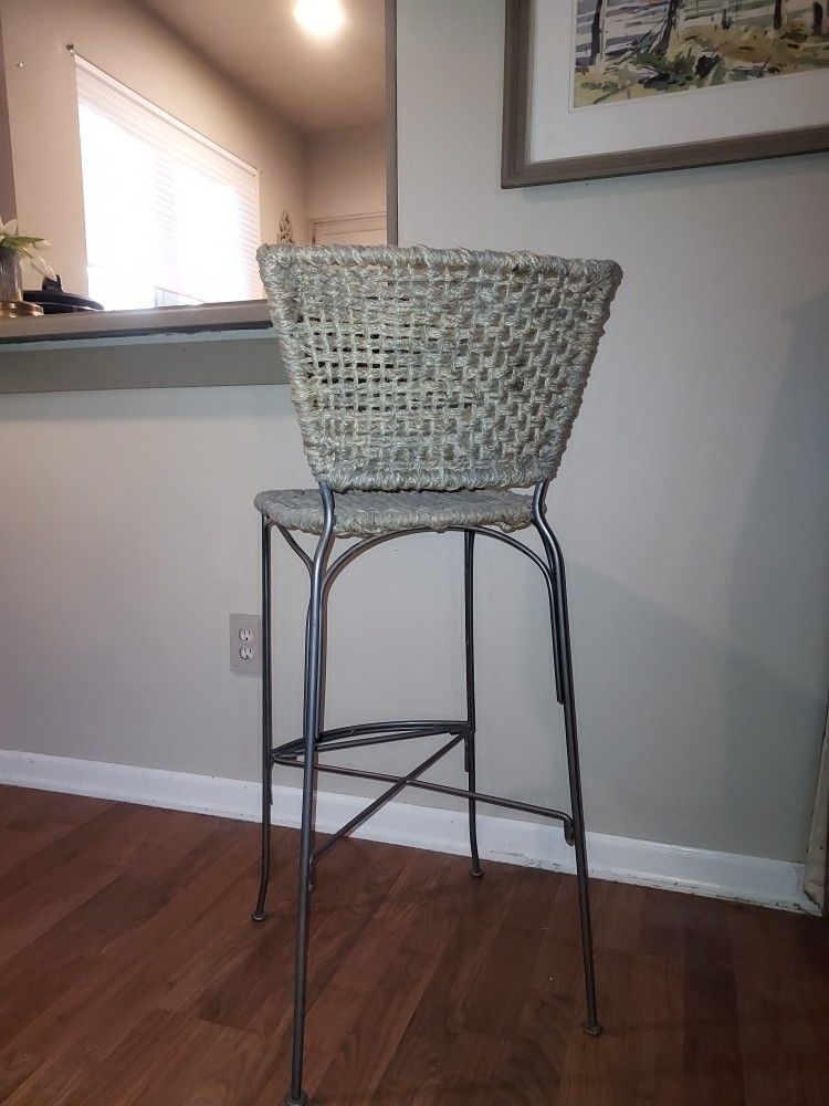 This bar stool is tall. The seat is 29" from the ground (see photo comparing it to a regular chair). It's sisal and metal, so it has the coastal wicker look without the cracking that happens with wicker. I'm just off I-90, exit 18 (Issaquah) and I'm generally very available. Five dollar discount if you communicate without ghosting and show up when you say you will.