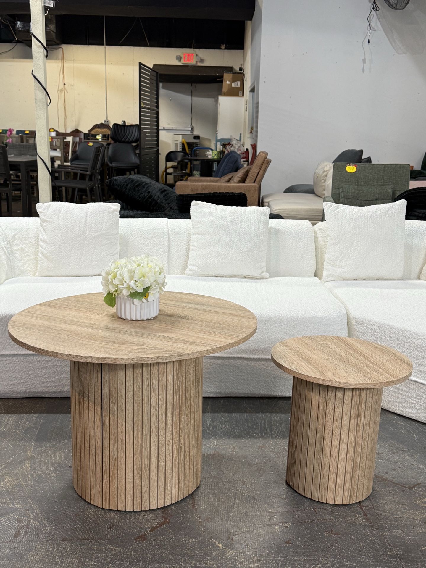 🔥Set of 2🔥Round Nesting Coffee Tables ,Side Table Fluted Drum End Table For Living Room .Bedroom(Natural) 💰89$