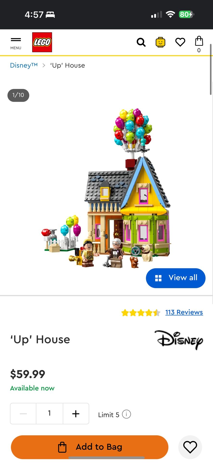 LEGO Disney and Pixar 'Up' House #43217 . super cute set!! perfect condition. is currently assembled but i can disassemble for pickup if you prefer. i also have the box and instruction booklet in perfect condition. if it’s listed it is available!