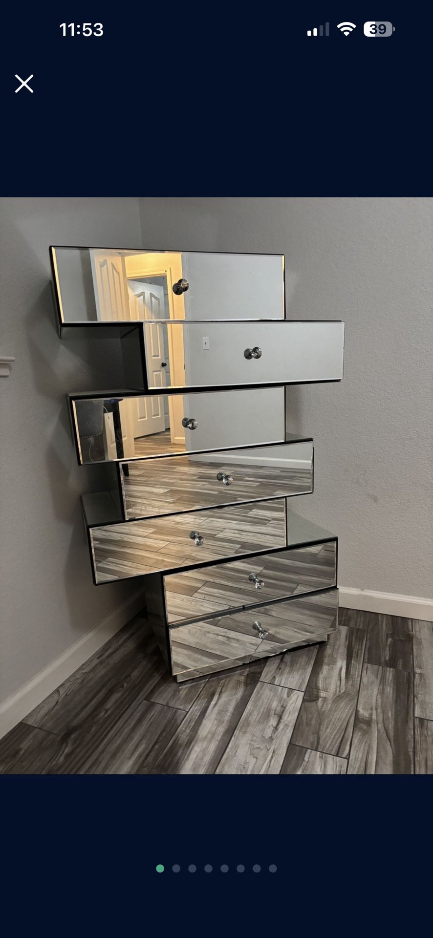 I love this dresser but i need the money It’s a beautiful discontinued mirrored dresser that was originally 2k but ones I can find online now are going for over 1k in this style Pick up only in Citrus Heights by the Safeway on greenback and Dewey . It has two cracks and the panels can be replaced hence why the price is low