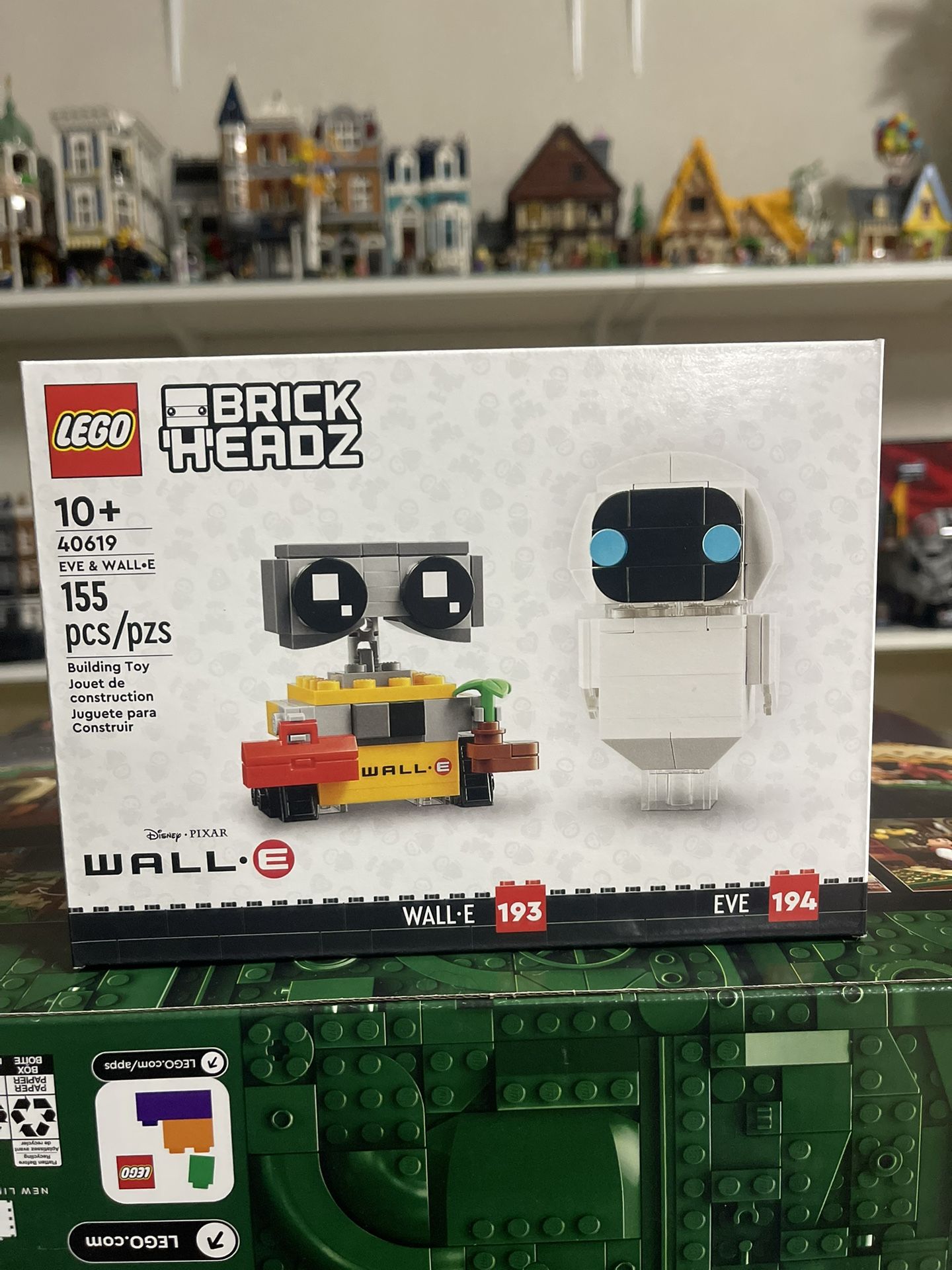 LEGO EVE & WALL•E (40619) – New & Sealed 155-piece BrickHeadz set featuring EVE and WALL•E with display baseplates and plant element. Great for Disney/Pixar fans and collectors!