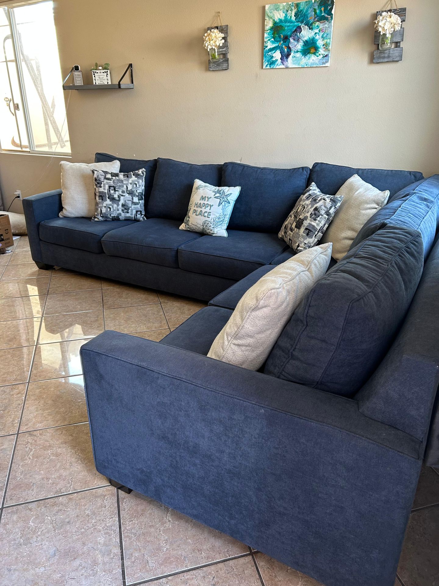 Beautiful Dark Blue Sectional Couch from Jerome’s