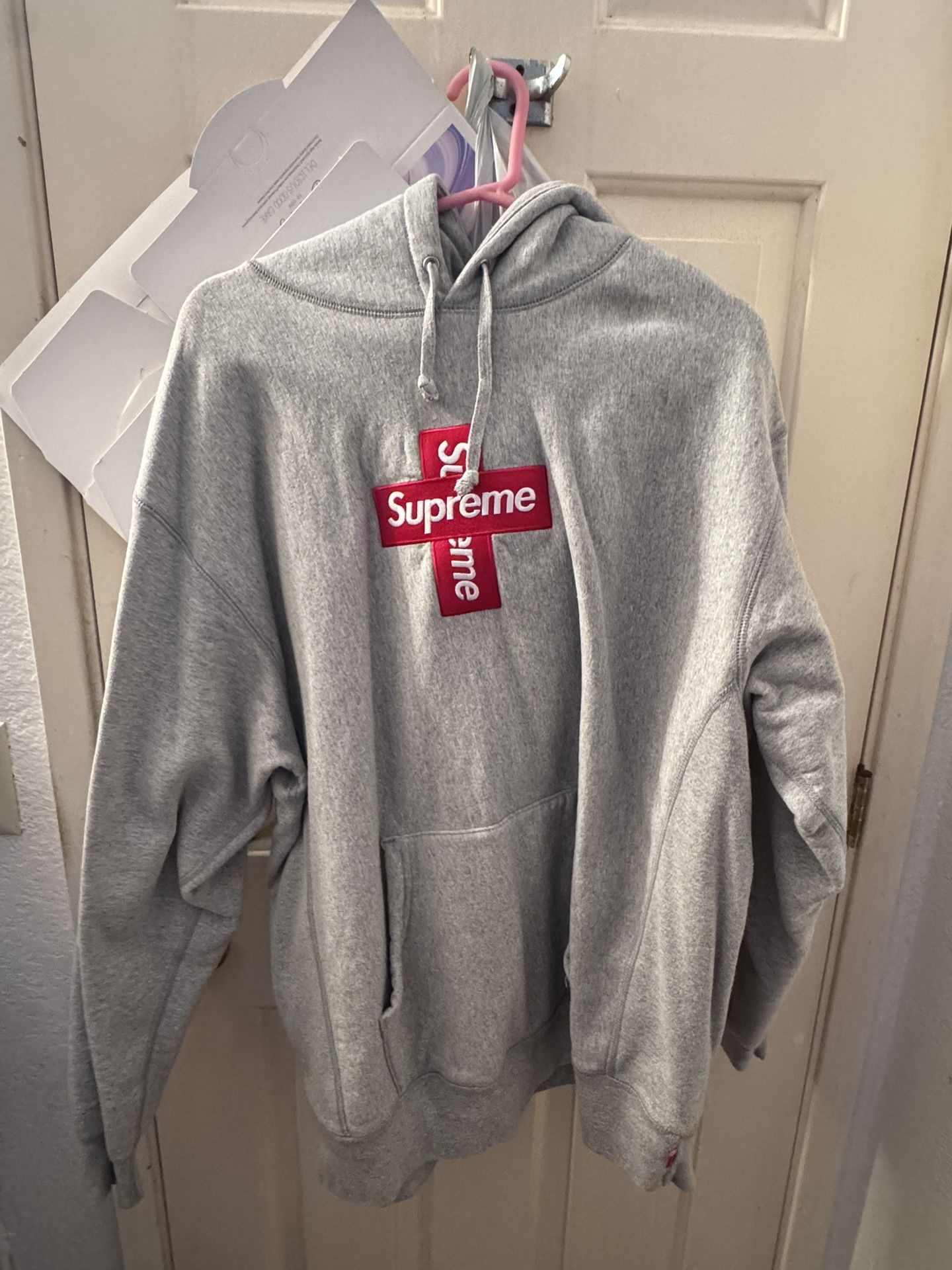 Supreme Cross Box Logo Hooded Sweatshirt “Heather Grey” Size Large Condition 9.2/10 Pick up only(94608)