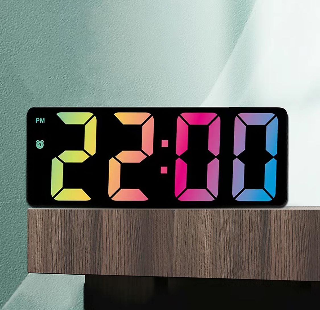 Digital Alarm Clock Colorful LED Electronic Clock USB/ Battery Operated Smart Desk Clock 12/24H Display 3 Adjustable Brightness 5 Modes Voice Control