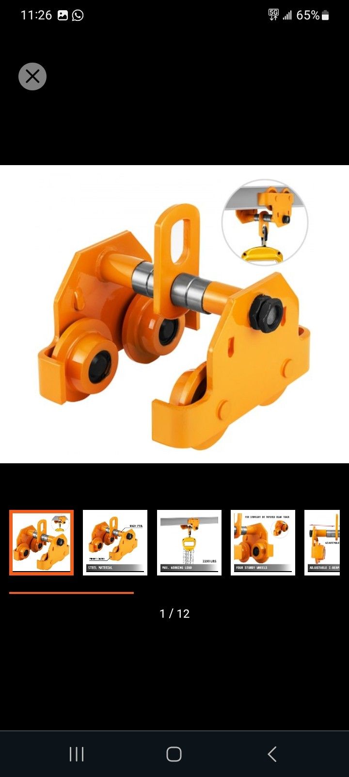 Plain trolley weight capacity: 1 Ton (2000 lbs) Push beam trolley comes with multiple spacer washers make beam flange width adjustment quick and easy Manual trolley is rugged steel side plates feature built-in bumper guards 1 Ton trolley hardened wheels with lubricated for life, double sealed ball bearings Manual push trolley it is an ideal material handling tool for chain blocks, hoists, and lifting tackle and other industrial areas
