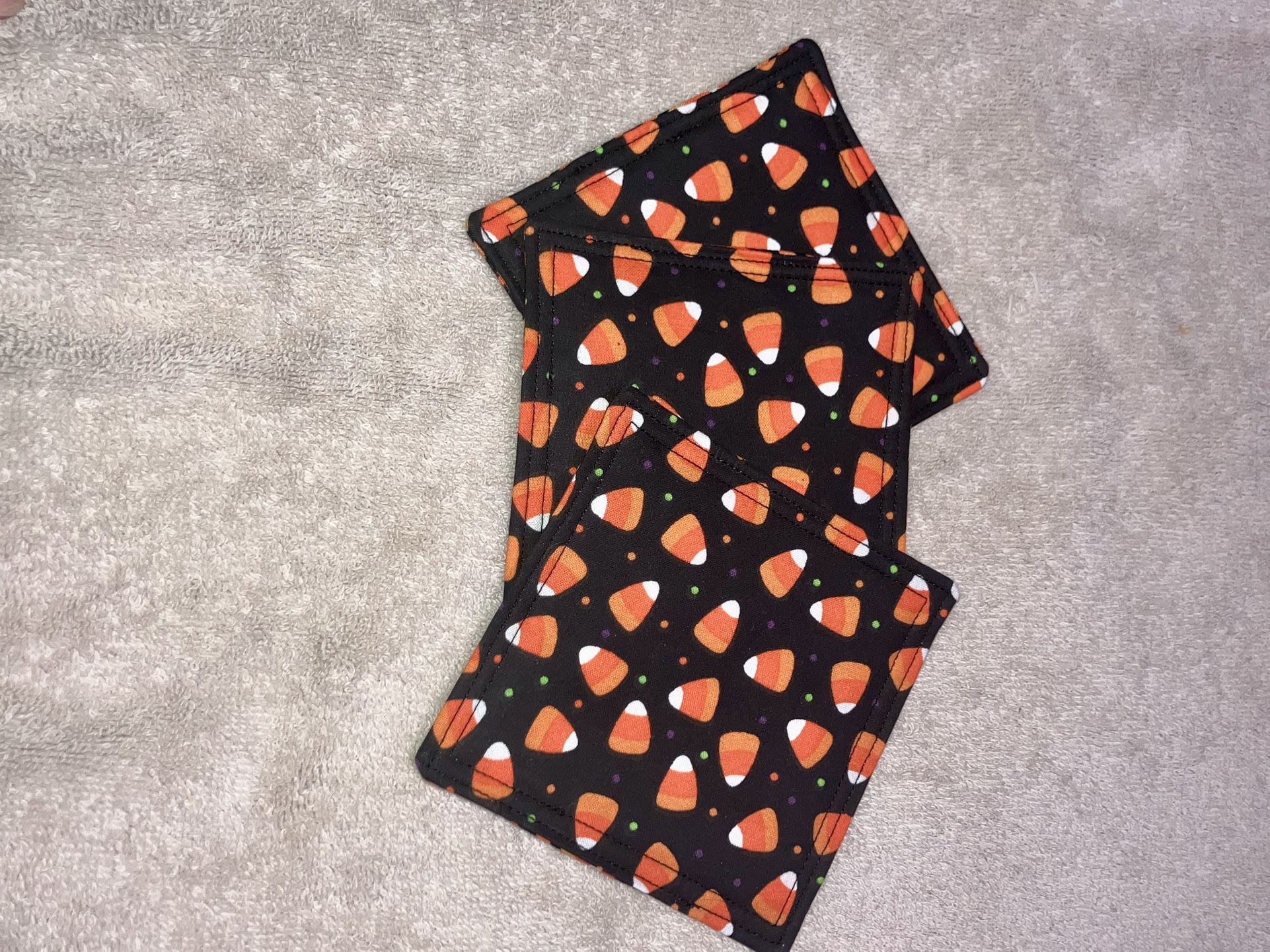 Handmade Machine Sewn Halloween Pattern Set Of 3 Coasters — 4”x4.5”