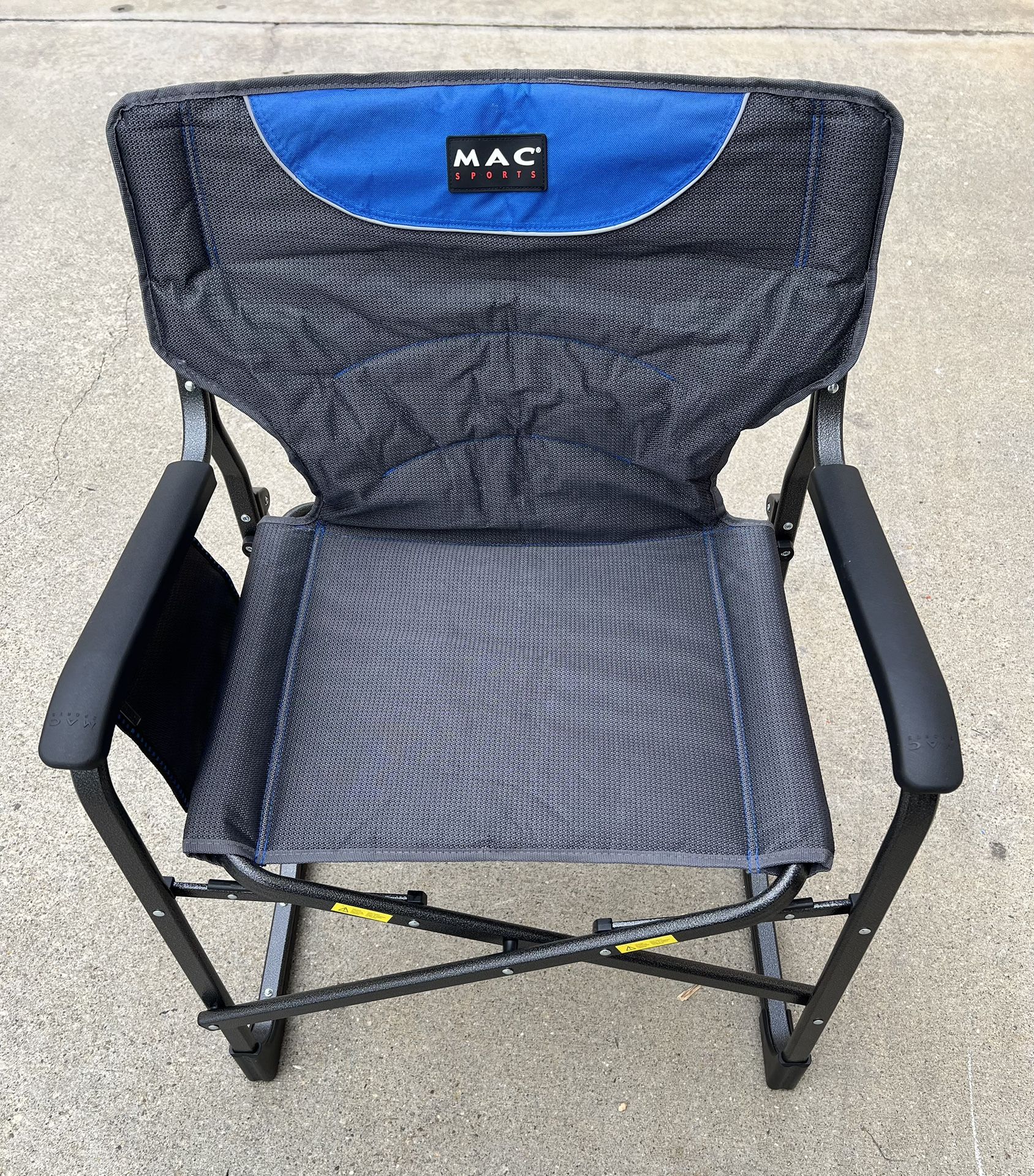 Mac Sports Rock n Lock Director Chair Lightweight Aluminum Frame Rock n Lock System Durable Polyester Fabric Storage Pockets Maximum Load 300 lbs.