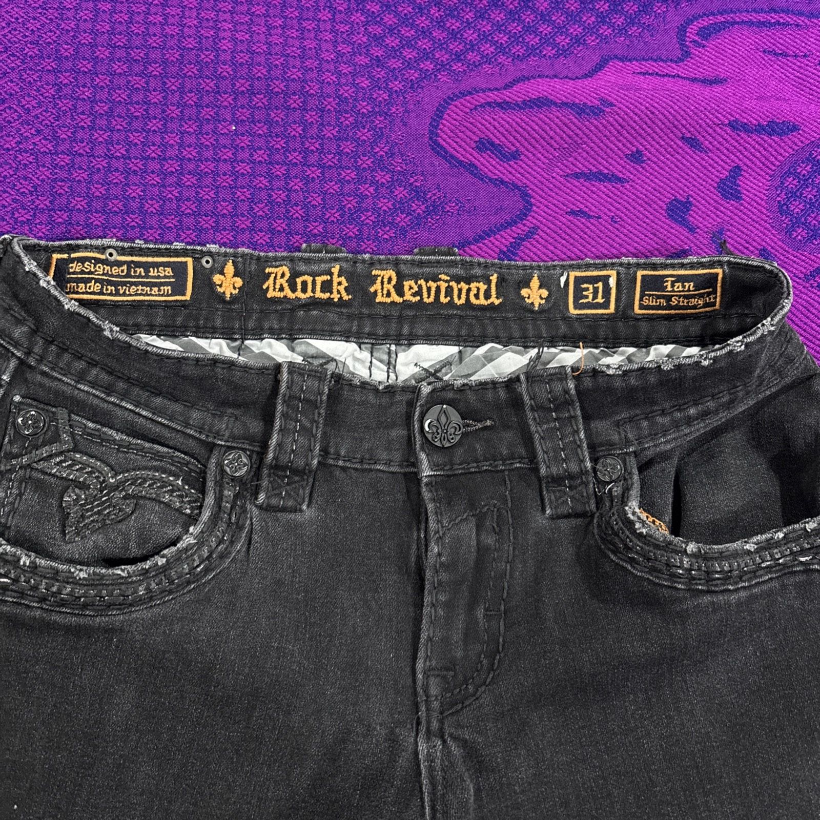 Rock Revivals Color Black Size 31x32 /Tan Slim Straight