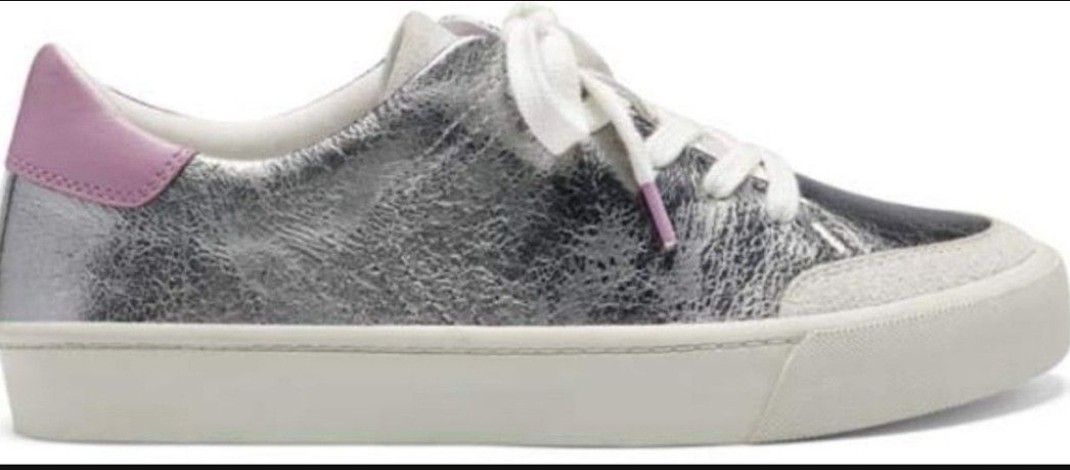 Women’s Louise EtCie Silver, White and Pink Causal Tie-Up Shoes. Size 5 1/2.