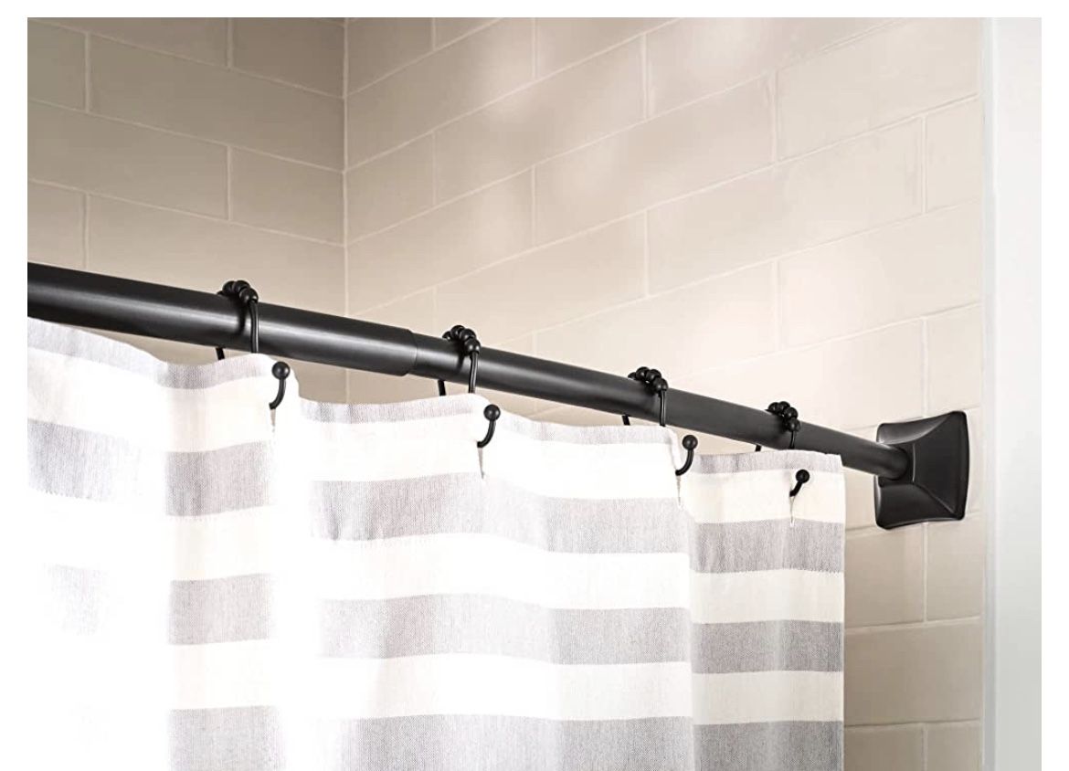 Moen matte black 54” - 72” adjustable curved shower rod. Permanent attachment to wall. Never opened.