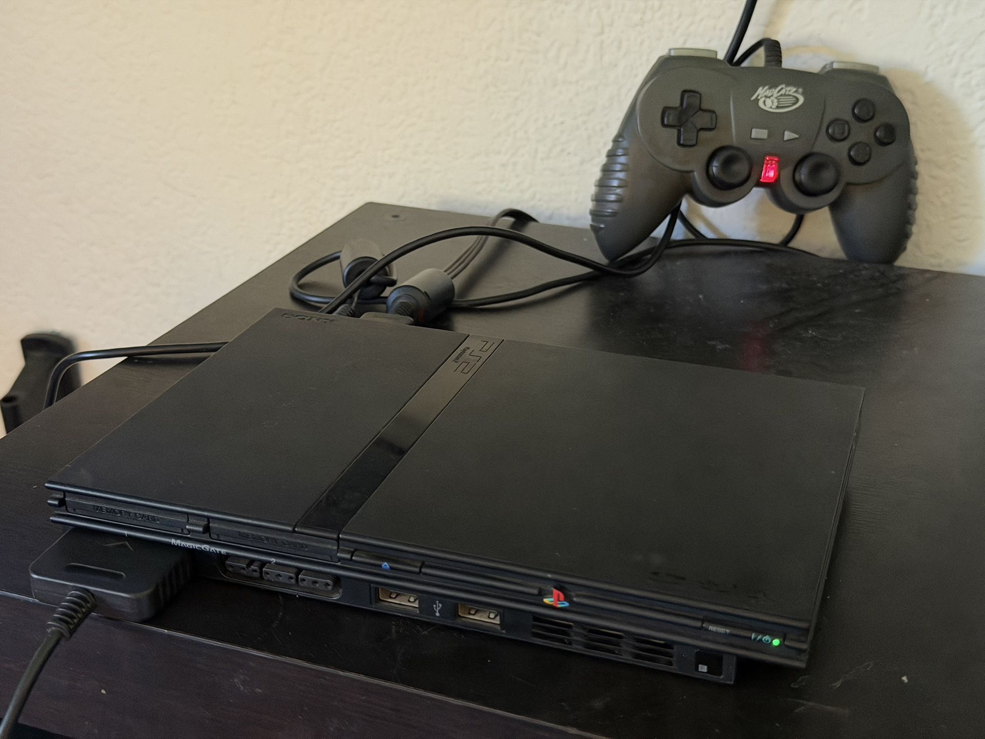 Playstation 2 slim in good condition. Working good I played gta 3 on it for acouple hours before posting. The ps2 comes with one controller