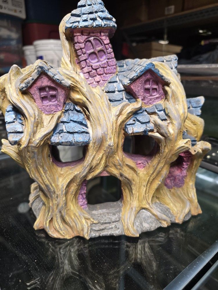roughly 10 inches high an 10 inches eide alot of open holes for fish to swim through