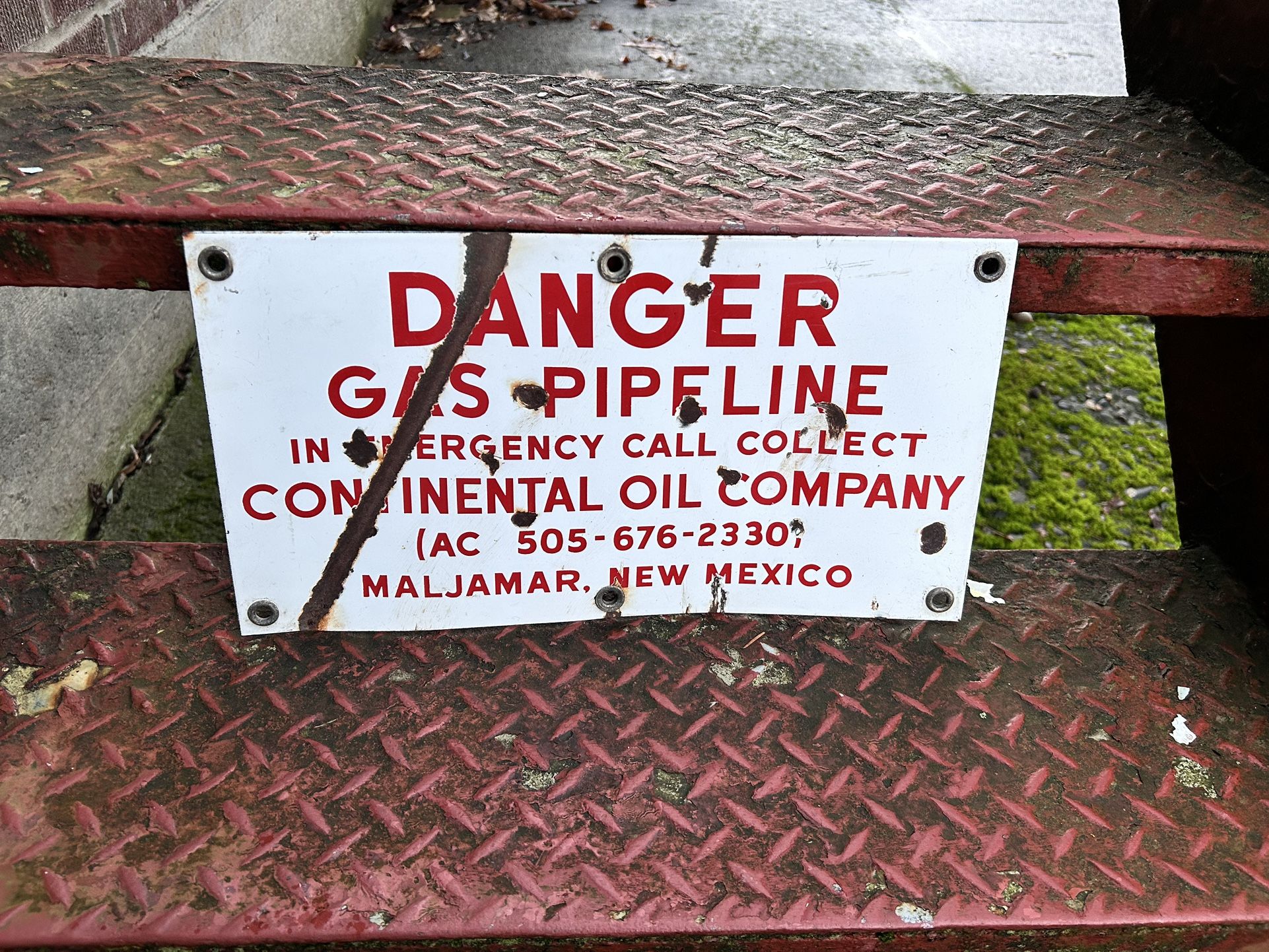 Vintage danger, porcelain sign Emergency, Continental oil, gas pipeline New Mexico