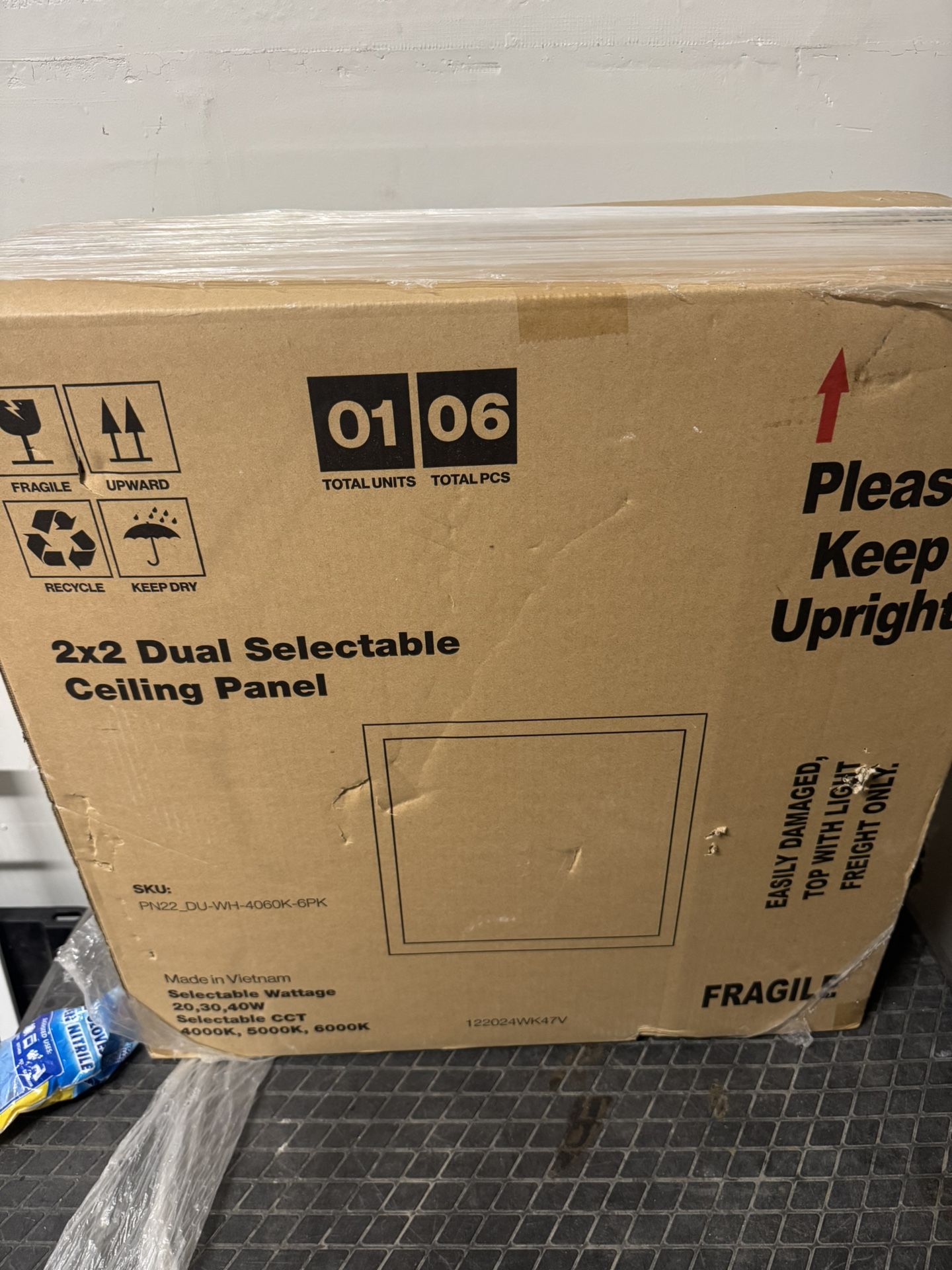 INTEGRATED LED A lightweight design with integrated LED lights provides brighter and more efficient lighting without having to replace outdated fluorescent tubes. Ideal applications include kitchens, living rooms, showrooms, offices, schools, and retail locations. SELECTABLE BRIGHTNESS Try out three different wattage options (30W, 35W, 40W) and find the perfect brightness to fit your space. The panel’s slim, lightweight design ensures a quick and easy installation and reduces long-term maintenance with no buzzing of flickering. SELECTABLE CCT Our LED ceiling panels provide instant bright light in various color temperature options (4000K, 5000K, 6000K) for optimal concentration and productivity. Choose your preferred color temperature during installation using the slider switch on the back of the panel.