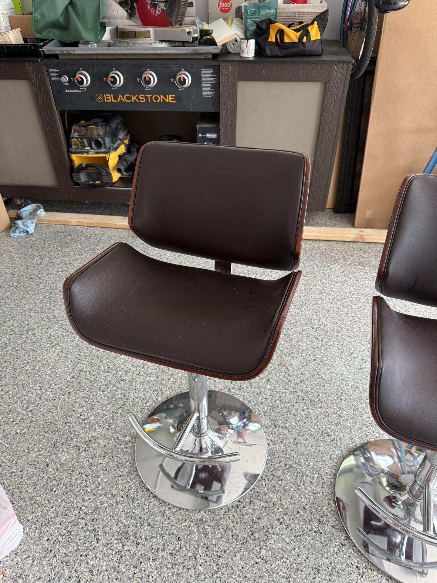 Brown leather and chrome swivel chairs with height adjustment