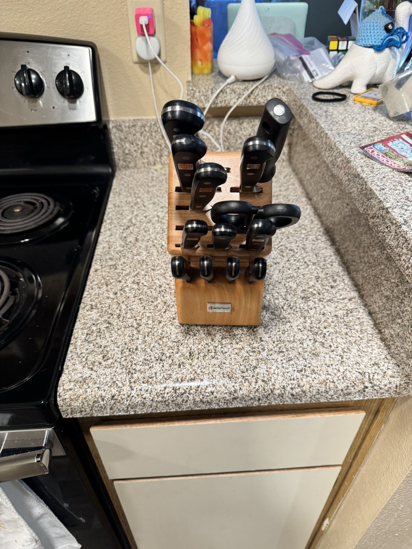 In good condition. Mechanical sharper comes with it. 13 piece set. A little rust on the scissors and serrated knife. OBO
