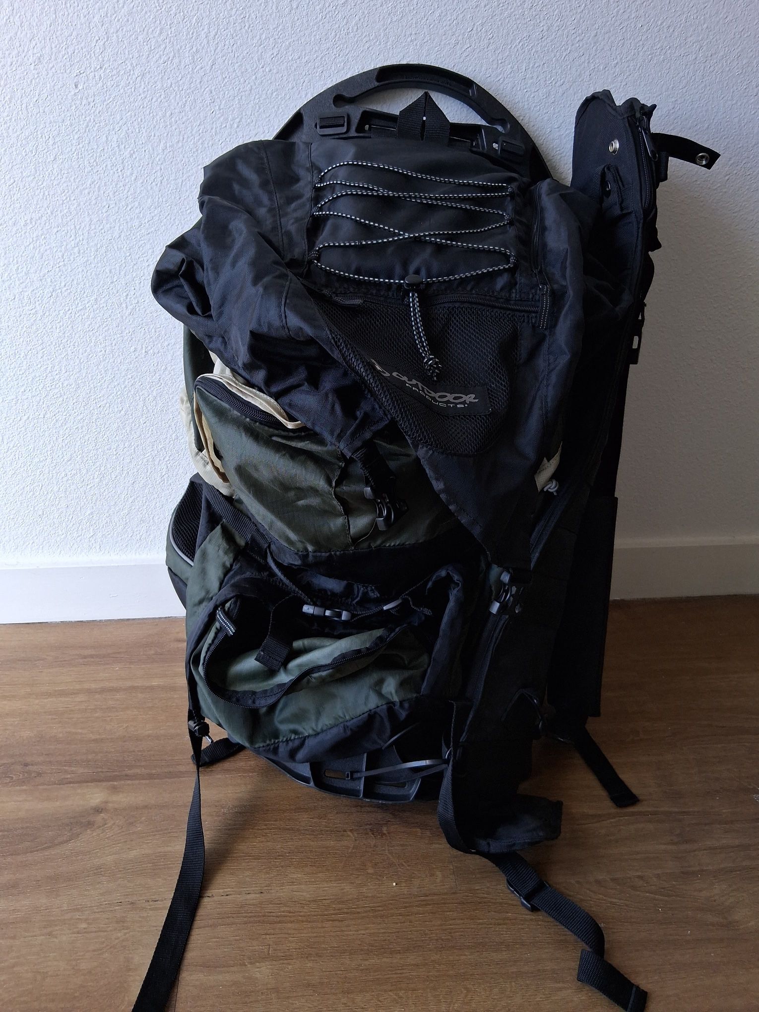Large and durable camping/hiking backpack in good used condition. Perfect for camping, hiking, road trips, or long outdoor adventures.