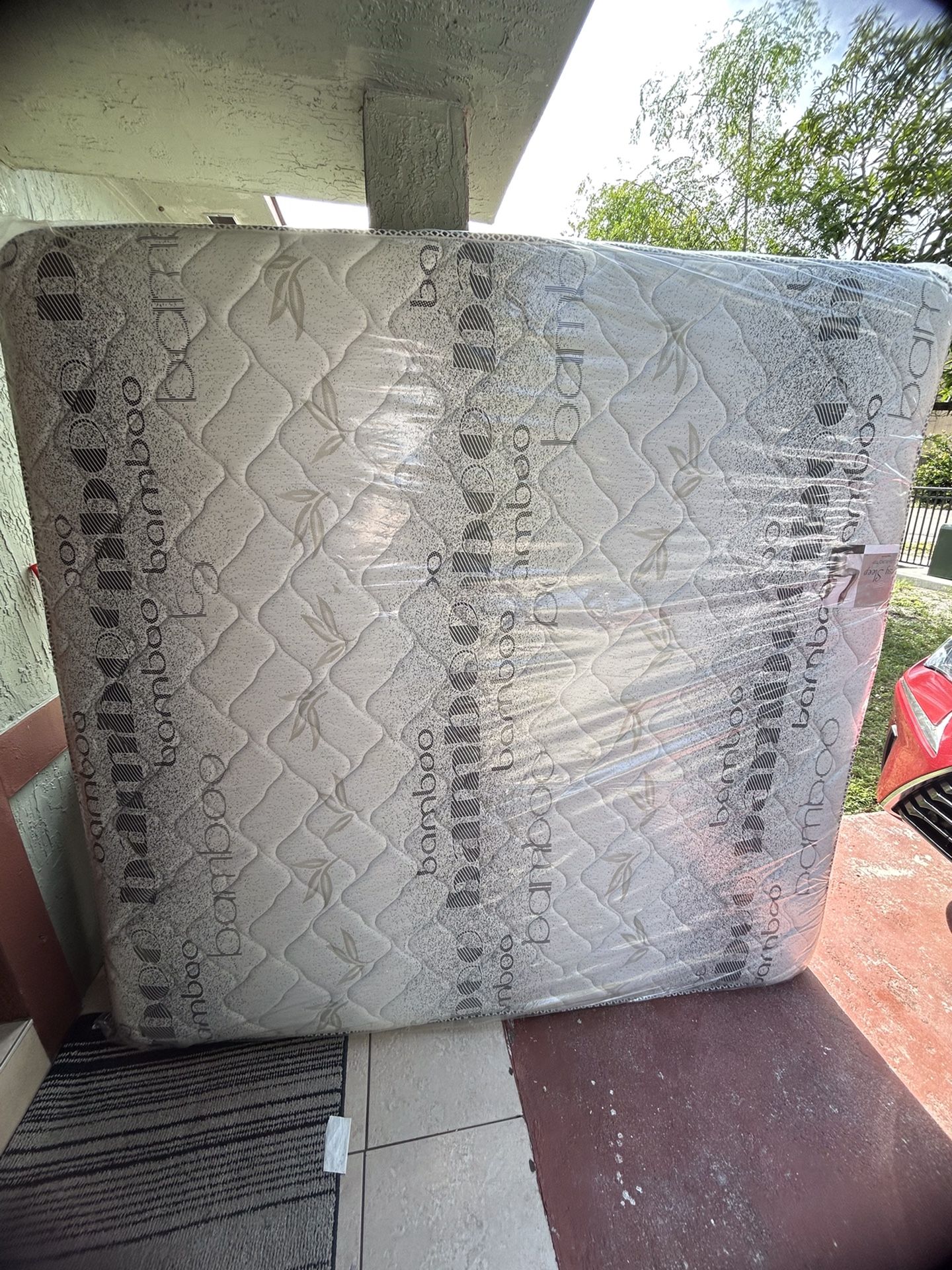 King size mattress and box springs still in bag also headboard and frame available if wanted barely used downsized bed so no longer need mattress