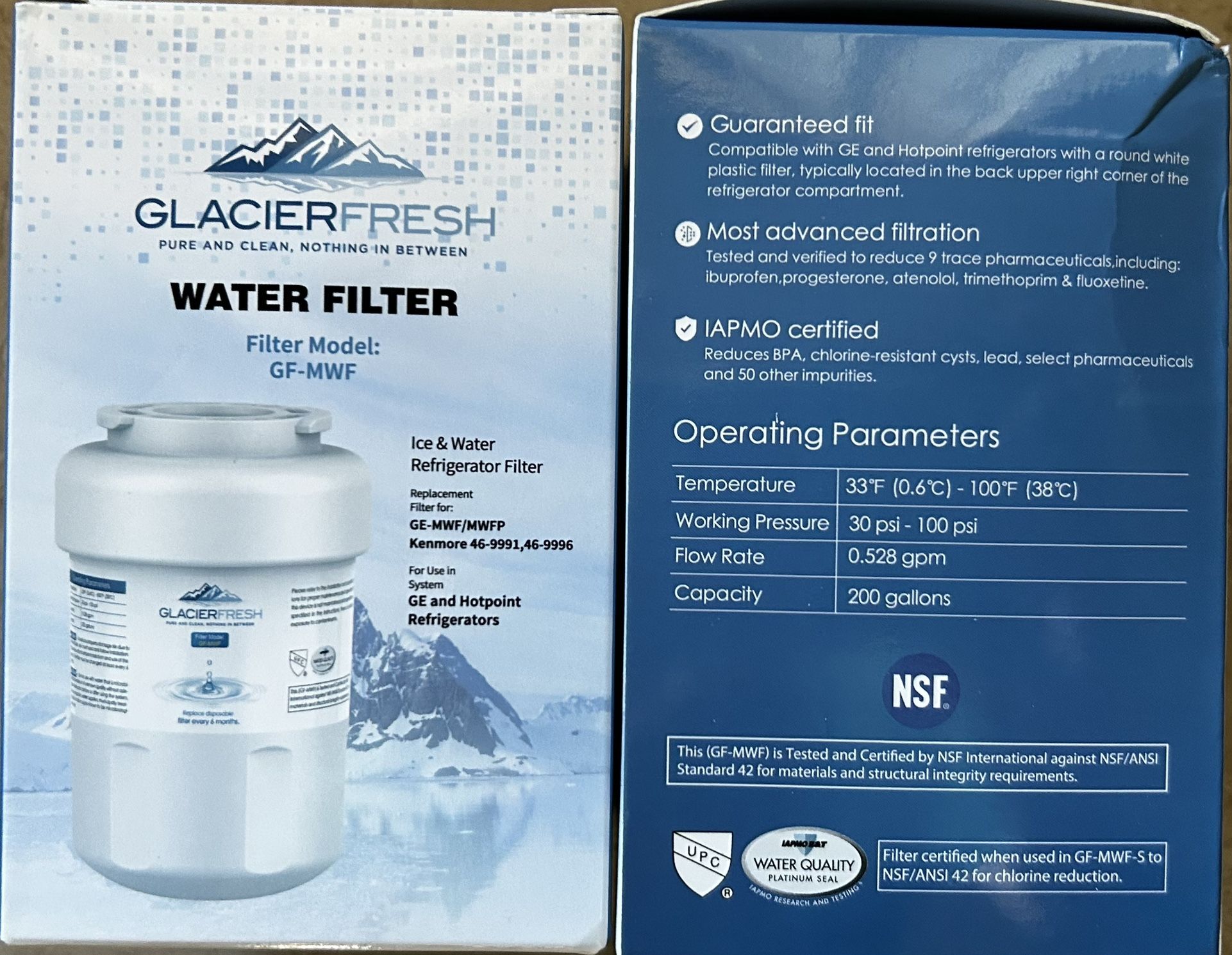 Two Filter Model GF-MWF fits GE Ice Maker and Water Dispenser Refrigerator. New still in original packaging. $10.00 each