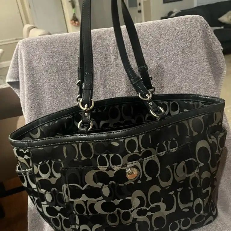 Coach Signature Logo Black Gray Diaper Bag Large Tote 18 × 12 × 5", great condition, Authentic Vintage, lots of space for blankets and bottles. Perfect as a diaper bag or a travel bag!
