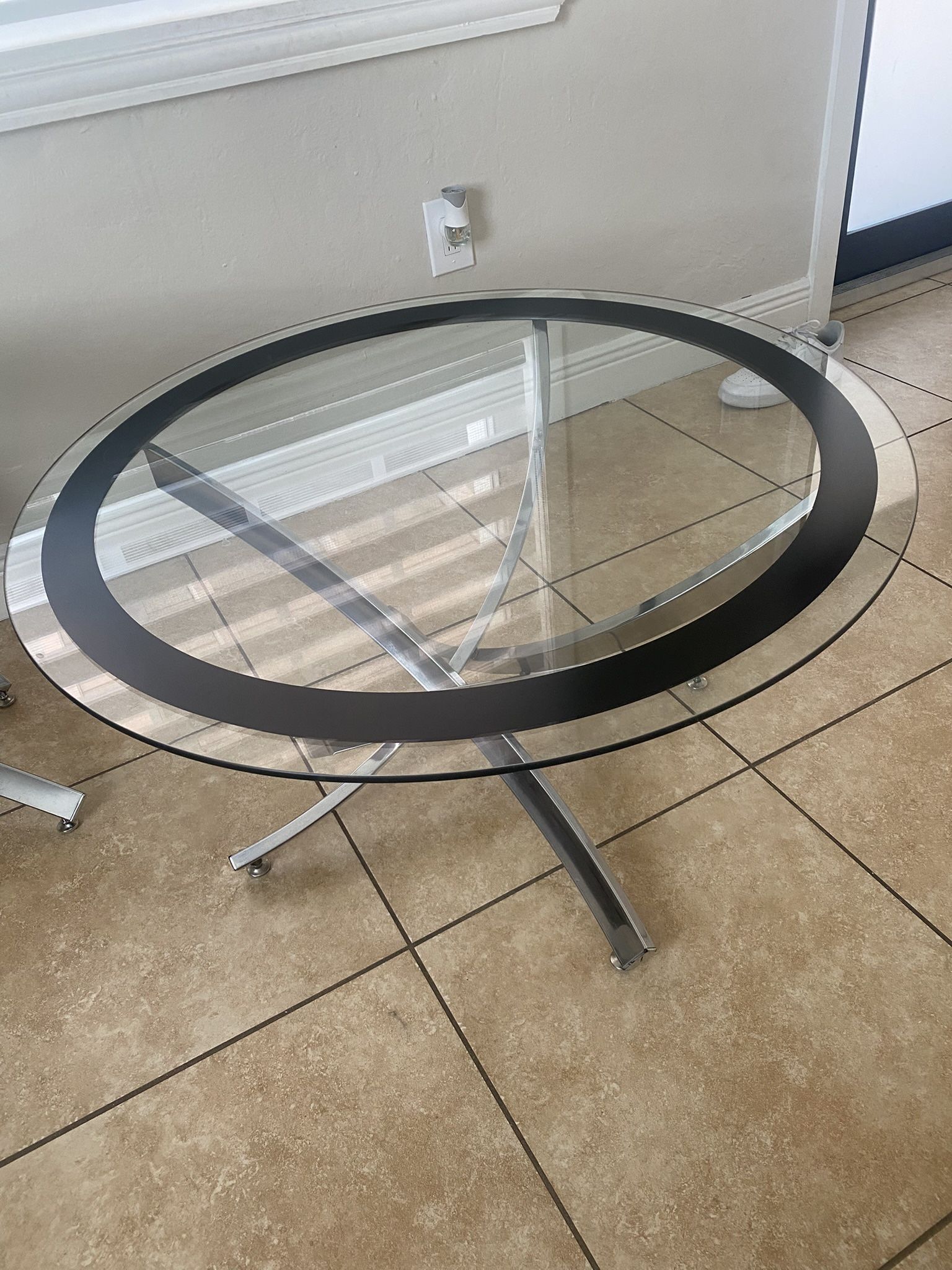 Mesa de centro ,base de cromo con cristal temporizado,en excelente condiciones
