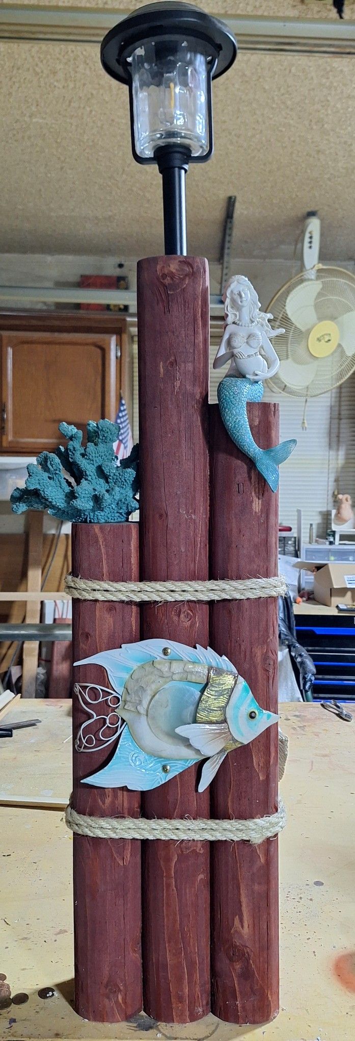 Custom garden art made from treated solid wood that hold up for years in all kinds of weather. All comes with a solar lightning. Each stands approximately 3 feet 10 inches hight and 10 inches wide. $120.00 each. These aren't available in stores