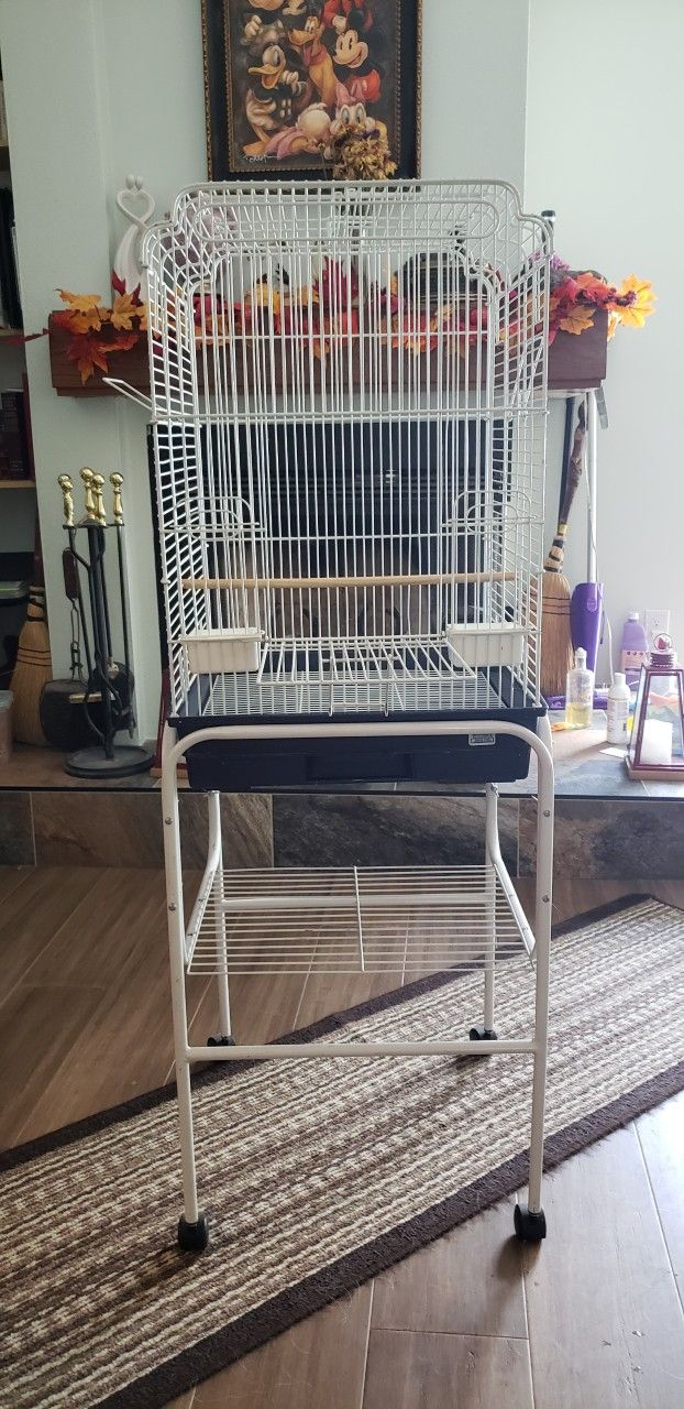 Bird cage for small birds with stand,opens up at top and front.Comes with two cups no toys was wife's parents bird cage when they visit but he passed away $30 OBO