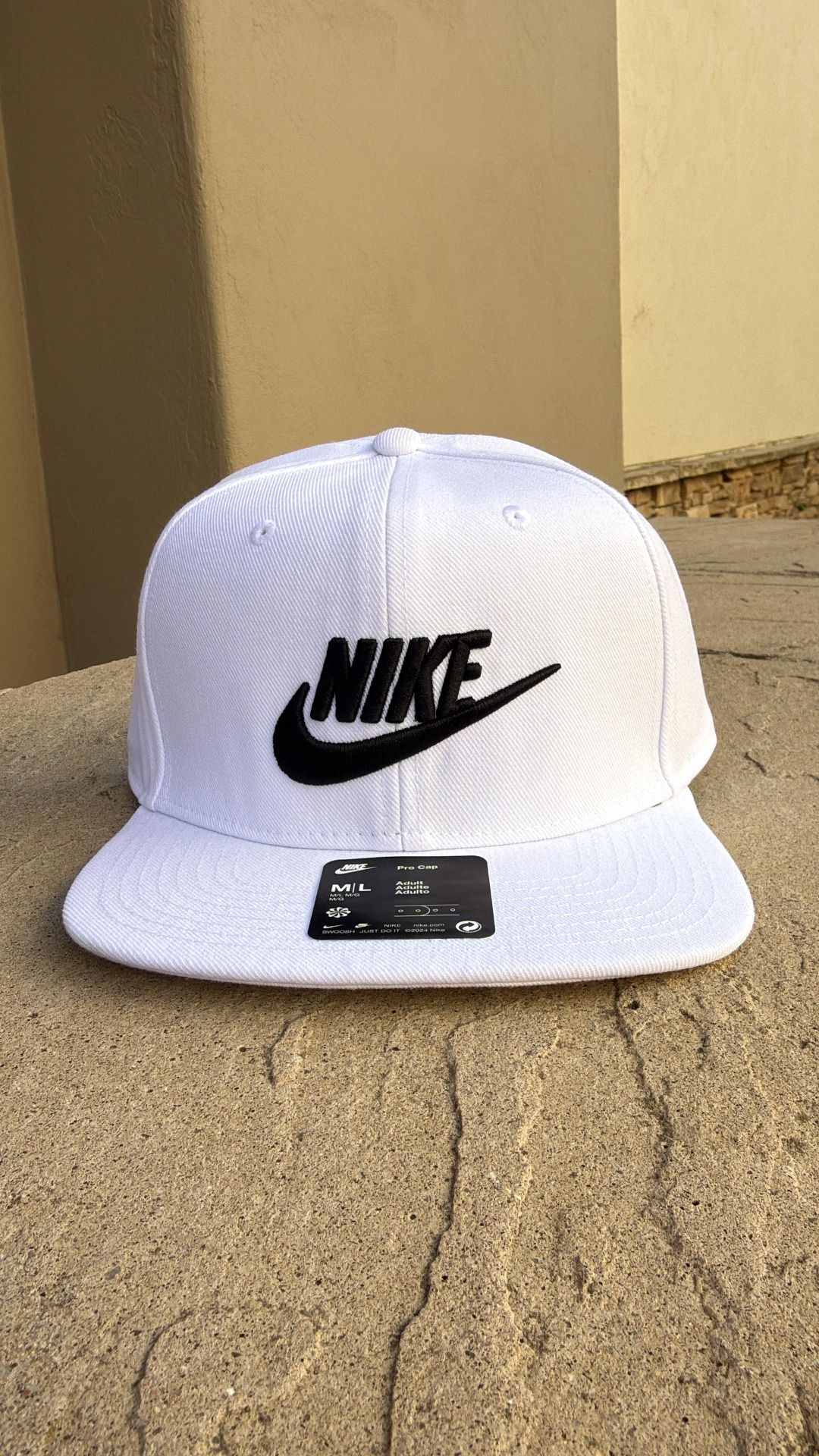 New Nike Flat Bill White Black Hat Cap SnapBack M/L