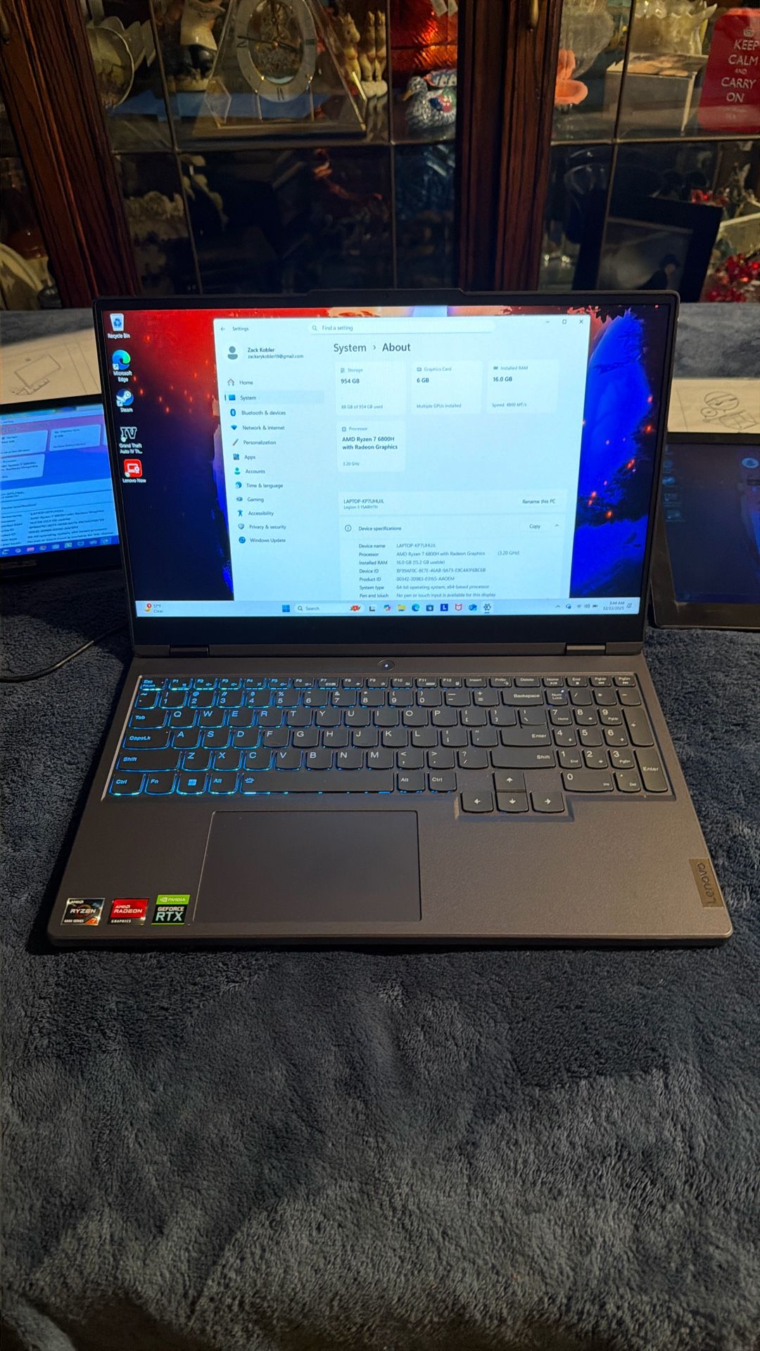 Processor: AMD Ryzen 7 6800H with Radeon Graphics RAM: 16 GB Also, comes with two portable monitors and charger.