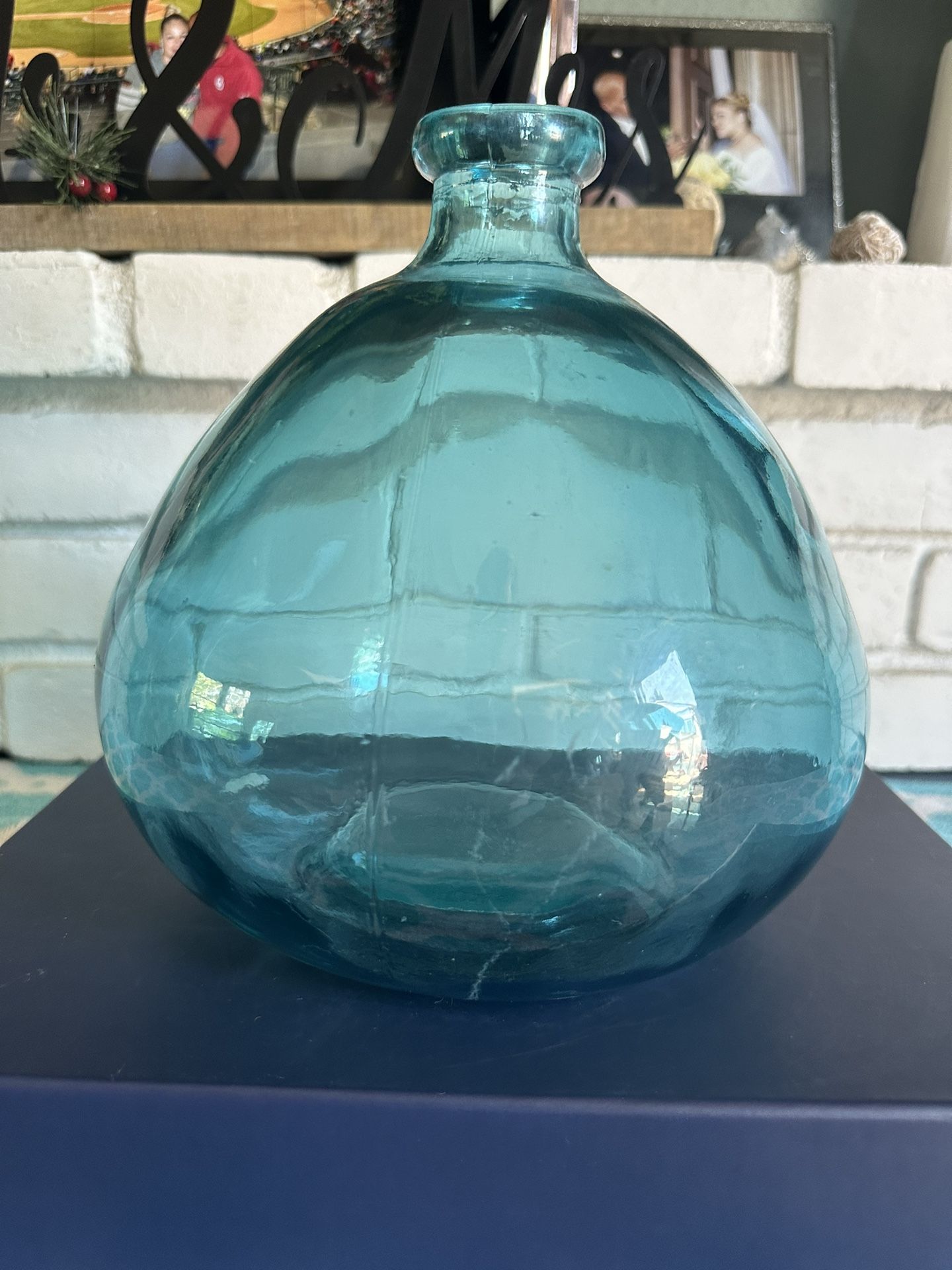 Large Handmade Blown Glass Oval Shape, Aqua Blue Transparent Jar 8.5”