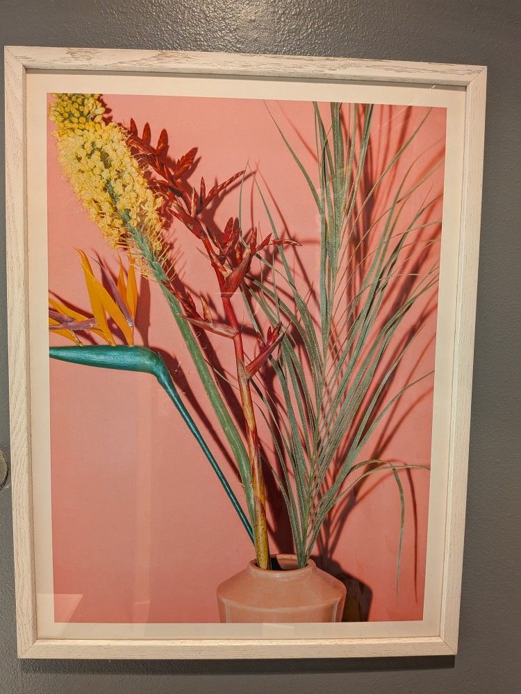 Wall decor with wooden frame, brightens up any wall! Size 19 by 25 inches