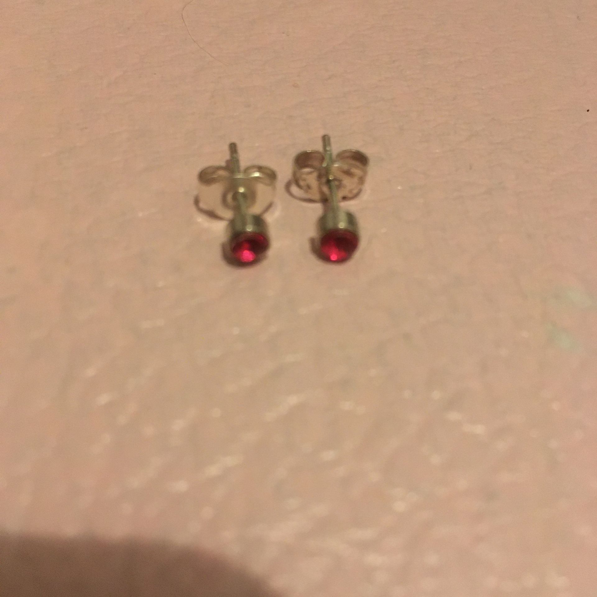 Silver earrings with pink crystals or plastic jewels. They’re simple and pretty!